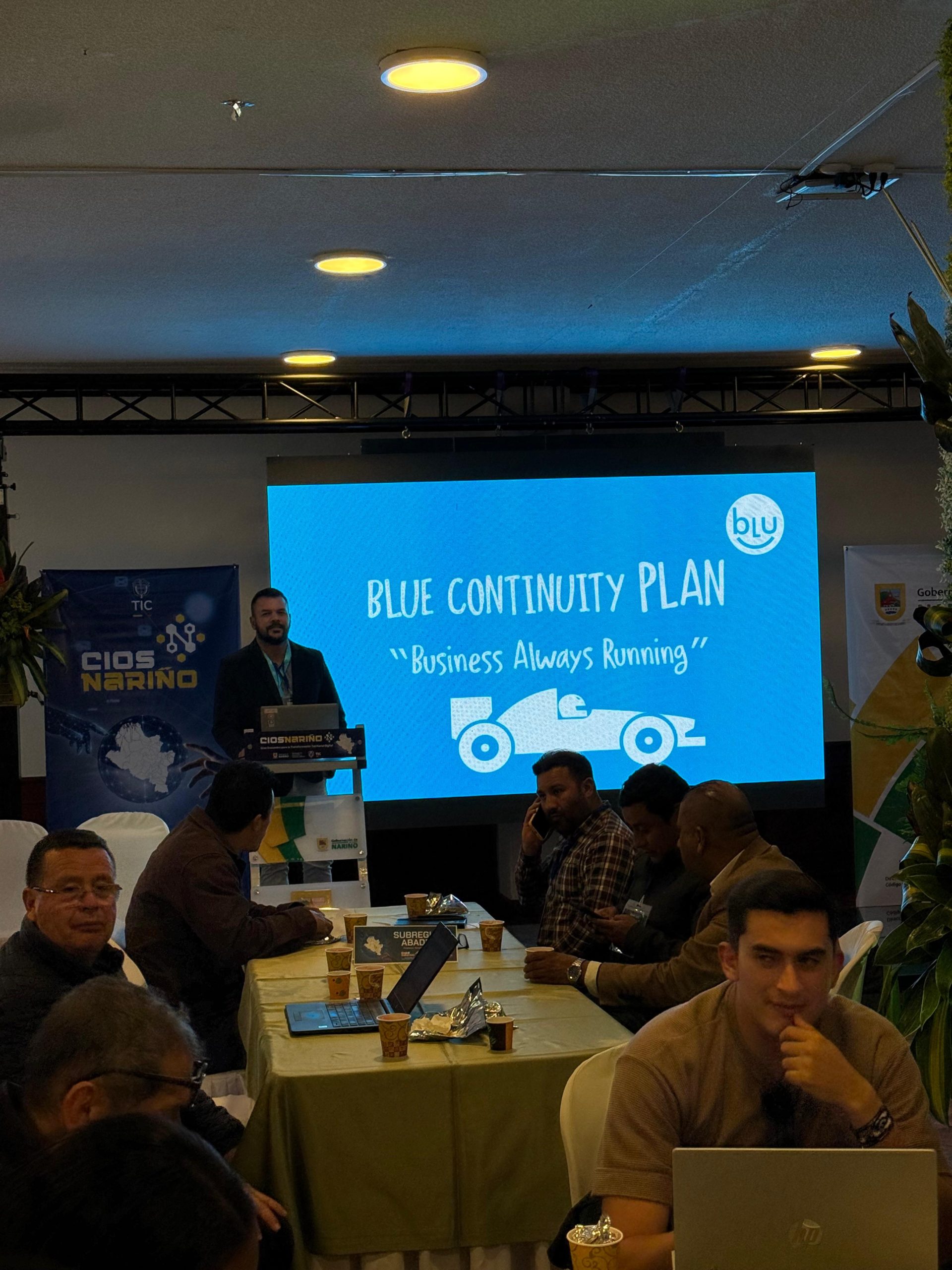 Durante el evento, no solo hicimos parte de la feria tecnológica como expositores, sino que también compartimos conocimiento especializado sobre uno de nuestros temas clave: la Continuidad de Negocio. Nuestra intervención resaltó la importancia de contar con soluciones robustas que garanticen la operación ininterrumpida de las entidades públicas y privadas ante cualquier eventualidad.